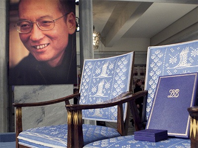 Nobel peace prize ceremony in 2010The chair for Liu Xiaobo was empty at the Nobel Peace Prize ceremony on December 10, 2010, and there were a few other empty chairs of ambassadors from countries that had been constantly warned by Chinese emissaries that attendance at the ceremony would be considered an unfriendly act. However the spirits of the armies holding to Democratic Vistas were there.