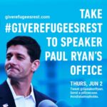 Rep. Paul Ryan publicized his endorsement of Donald Trump’s presidential campaign within moments of hosting a meeting with staff and members of the Fellowship of Reconciliation, along with supporters of FOR’s #GiveRefugeesRest campaign, a national